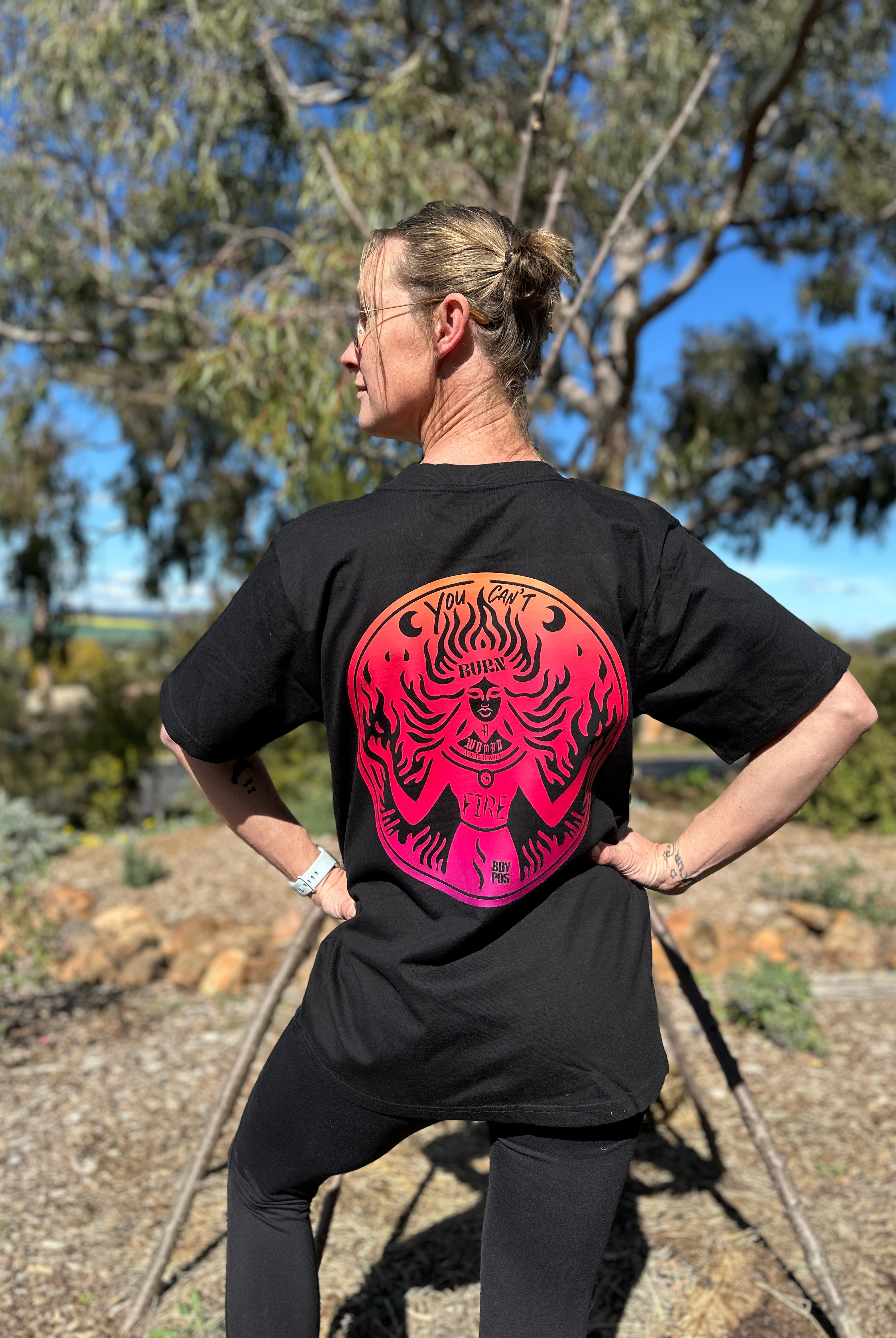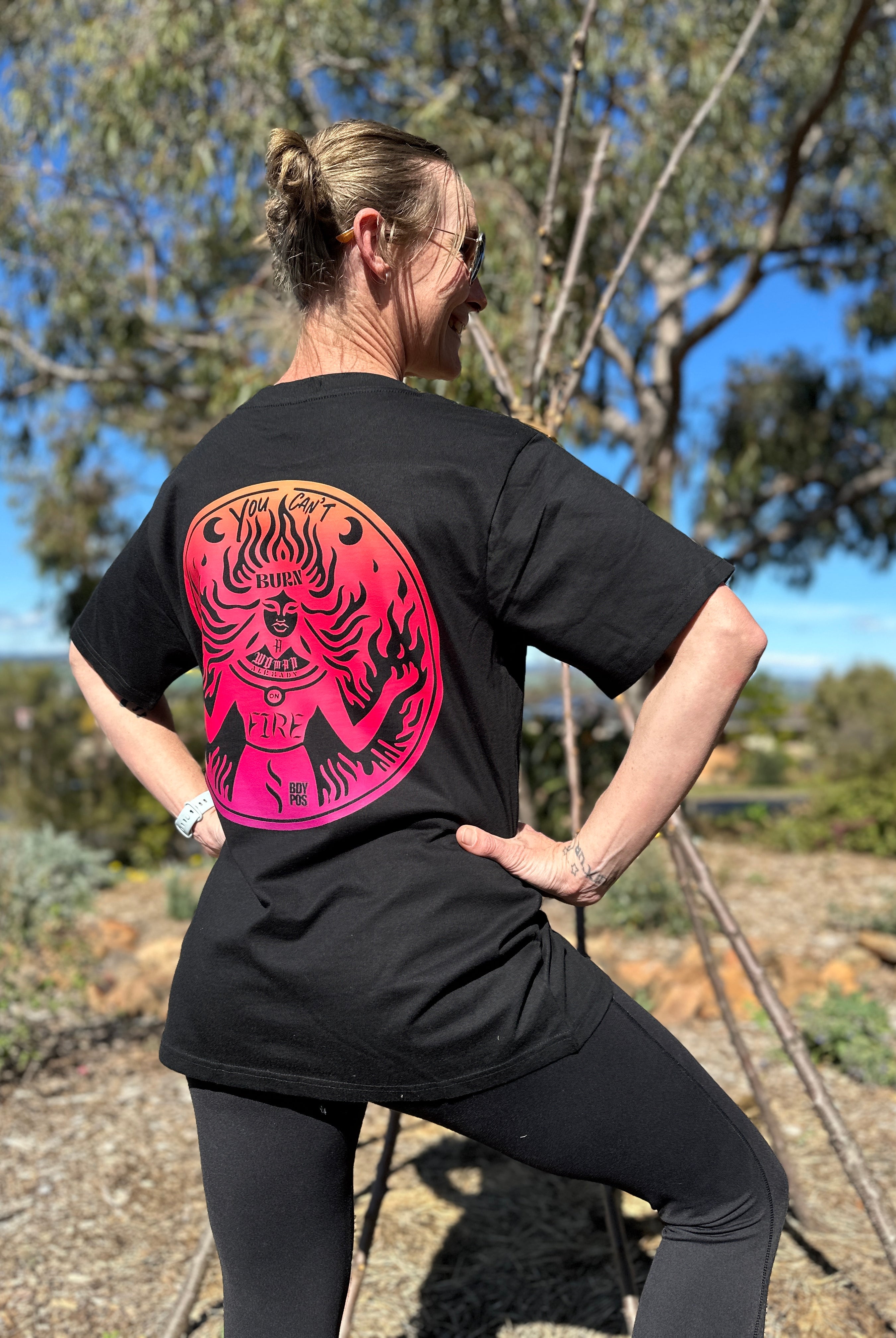 1 reviewWoman on Fire Tee – Sunset Edition